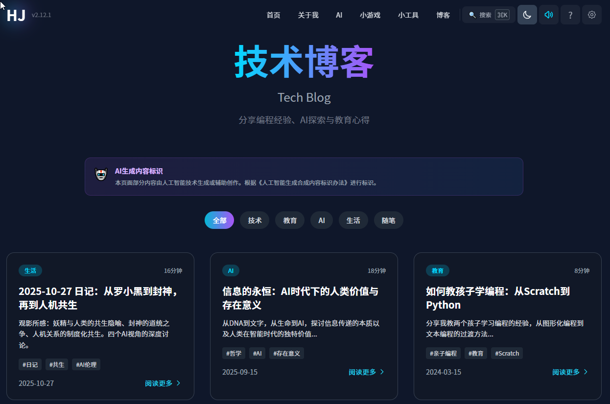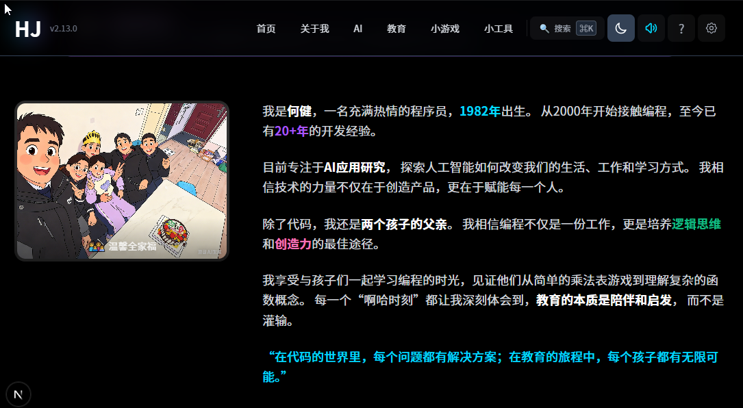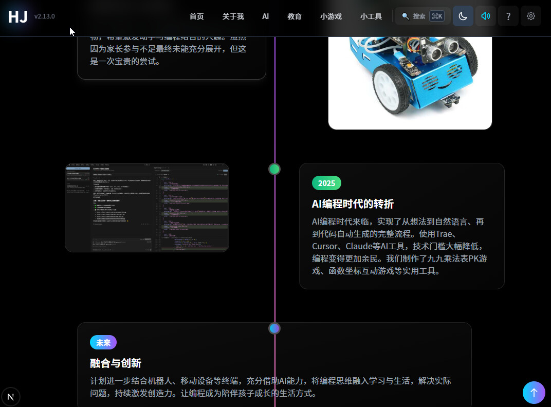 HJ1982(https://www.hj1982.cn/)不是课程平台,也不是炫技 ,而是一个"普通 IT 爸爸 + 两个孩子 + TRAE SOLO"的真实共创记录站。