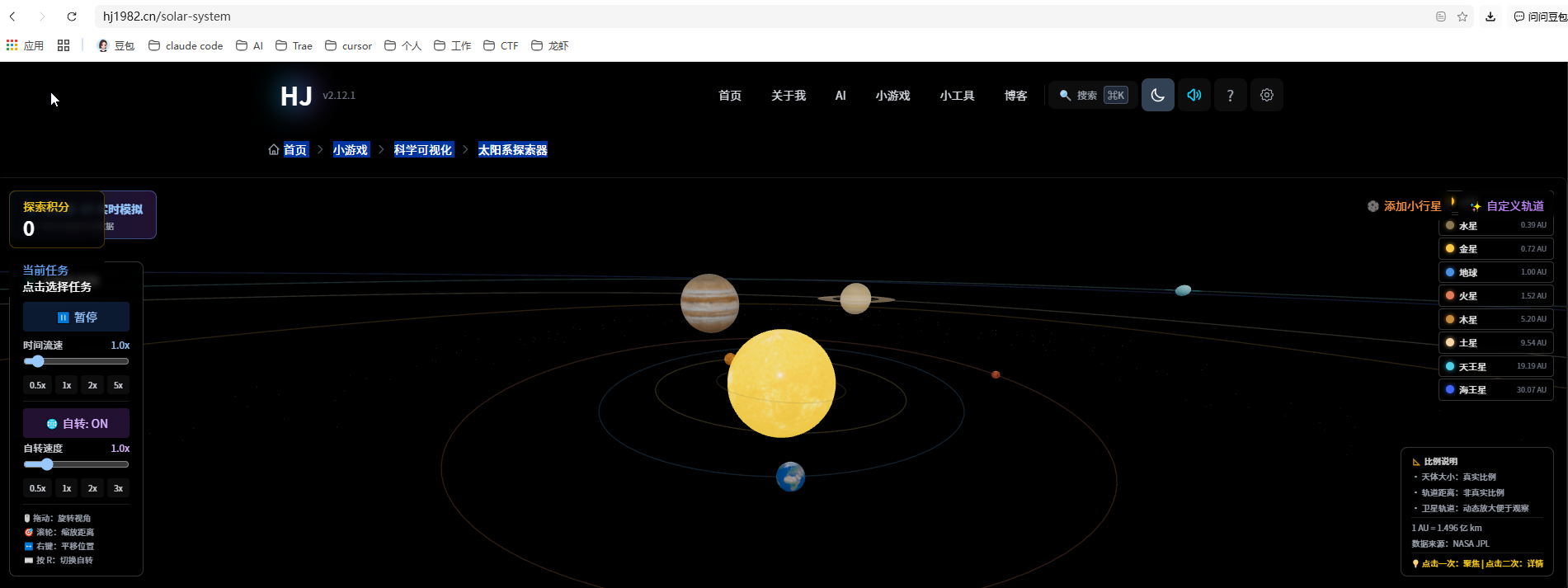 在线体验:太阳系探索器 | 3D交互式天文教育 | 何健个人网站
