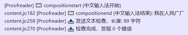 最终确定的方案是:通过拦截 compositionend 事件获取每次输入的文字片段,维护一个文本缓存,句子结束时发送检查。虽然没有内联下划线,但浮动面板仍然可以显示错误列表。