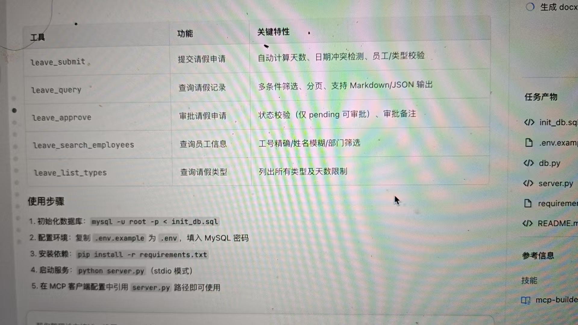 “我需要开发一个 MCP,接入员工系统数据库,来登记请假信息,数据库为 MySQL”