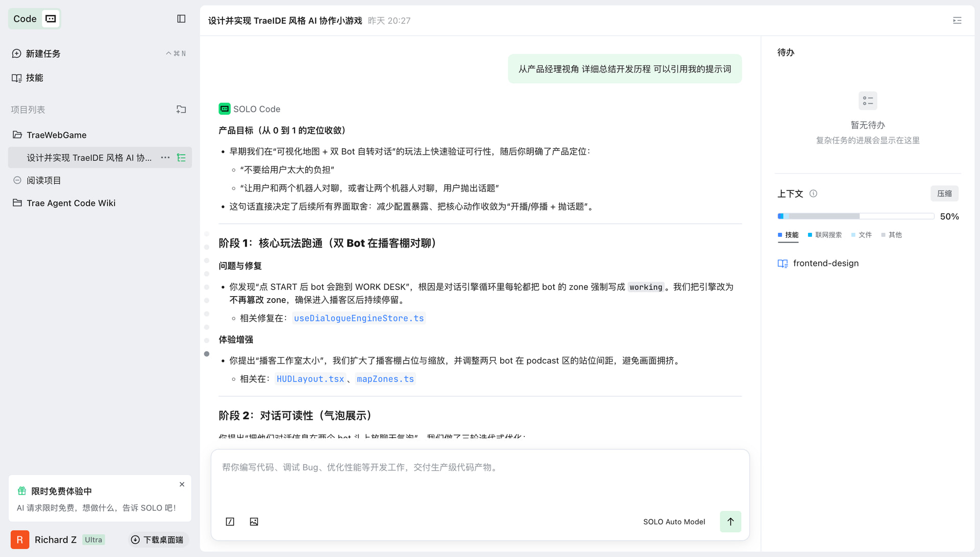 玩法:让他们先列方案,再追问“翻车瞬间怎么补救”,最后让 Trae 负责总结“可复制的套路”。