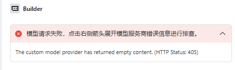 HTTP 405 错误表示「请求方法不被允许」,这通常是因为 Trae 请求的 HTTP 方法和你第三方服务端允许的方法不匹配,比较常见的原因是端点 URL 配置不完整。