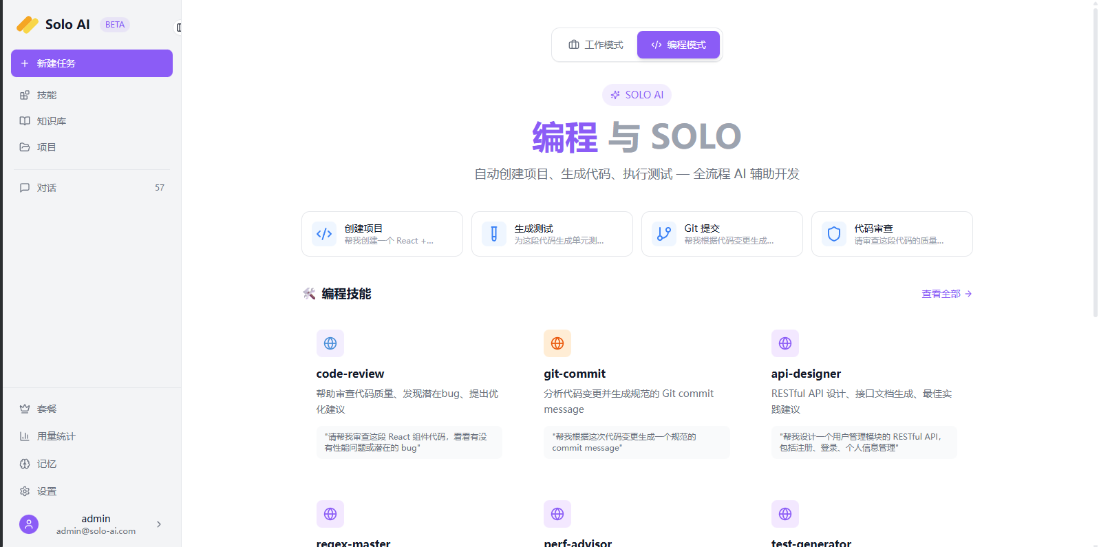 欢迎使用 Solo AI!本指南将详细介绍平台各项功能的使用方法,帮助你快速上手并充分发挥 Solo AI 的能力。