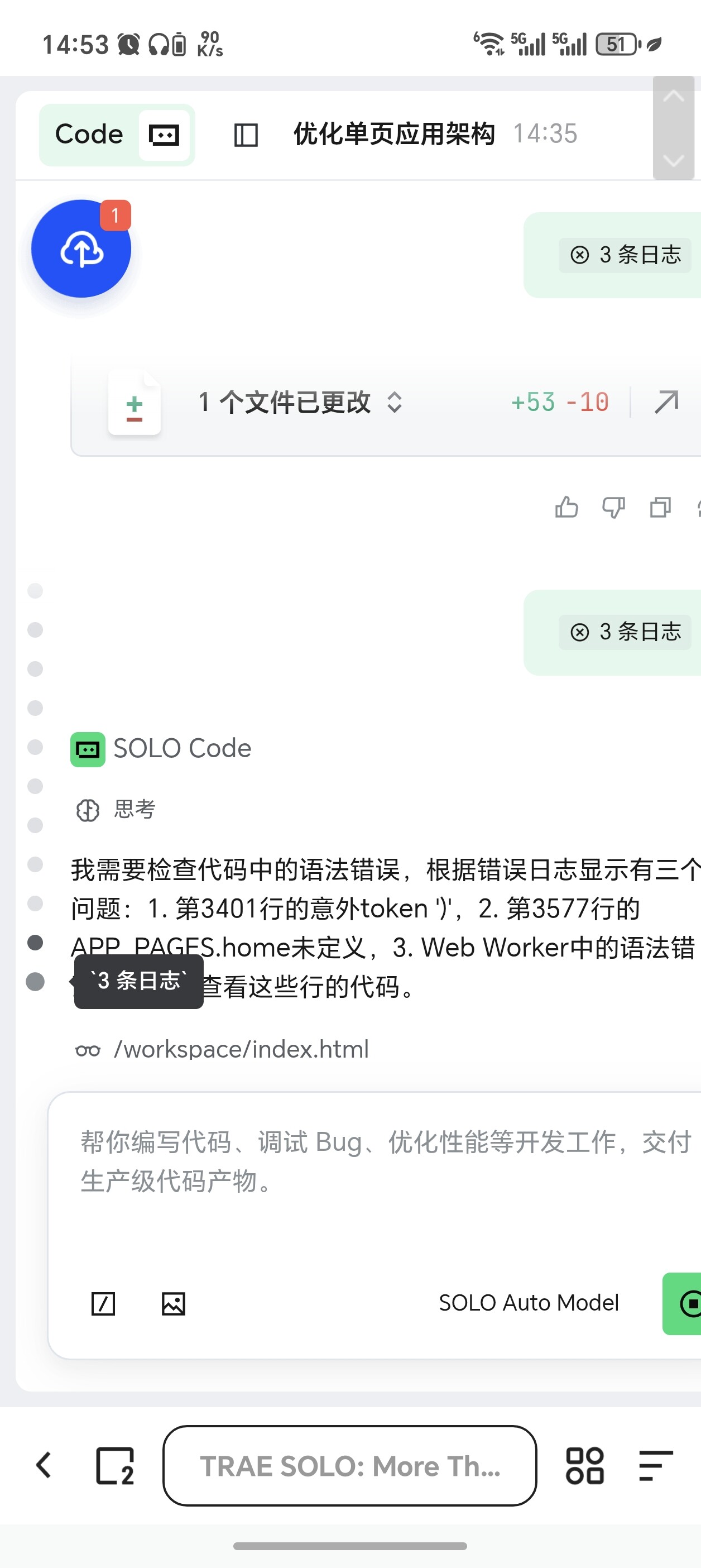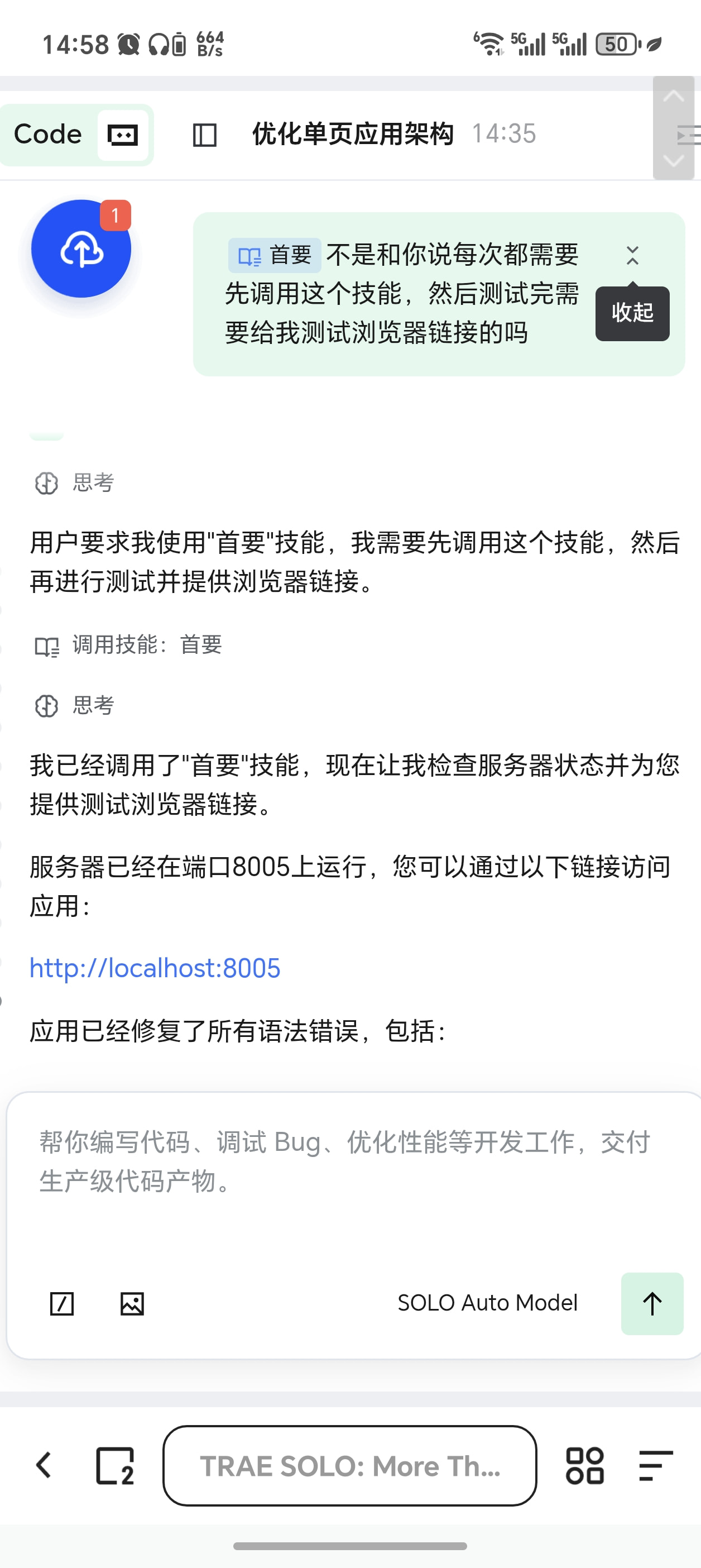 4. 长时间退出再重新进入,SOLO会丢失上下文记忆,需要重新梳理需求、重新调用技能。