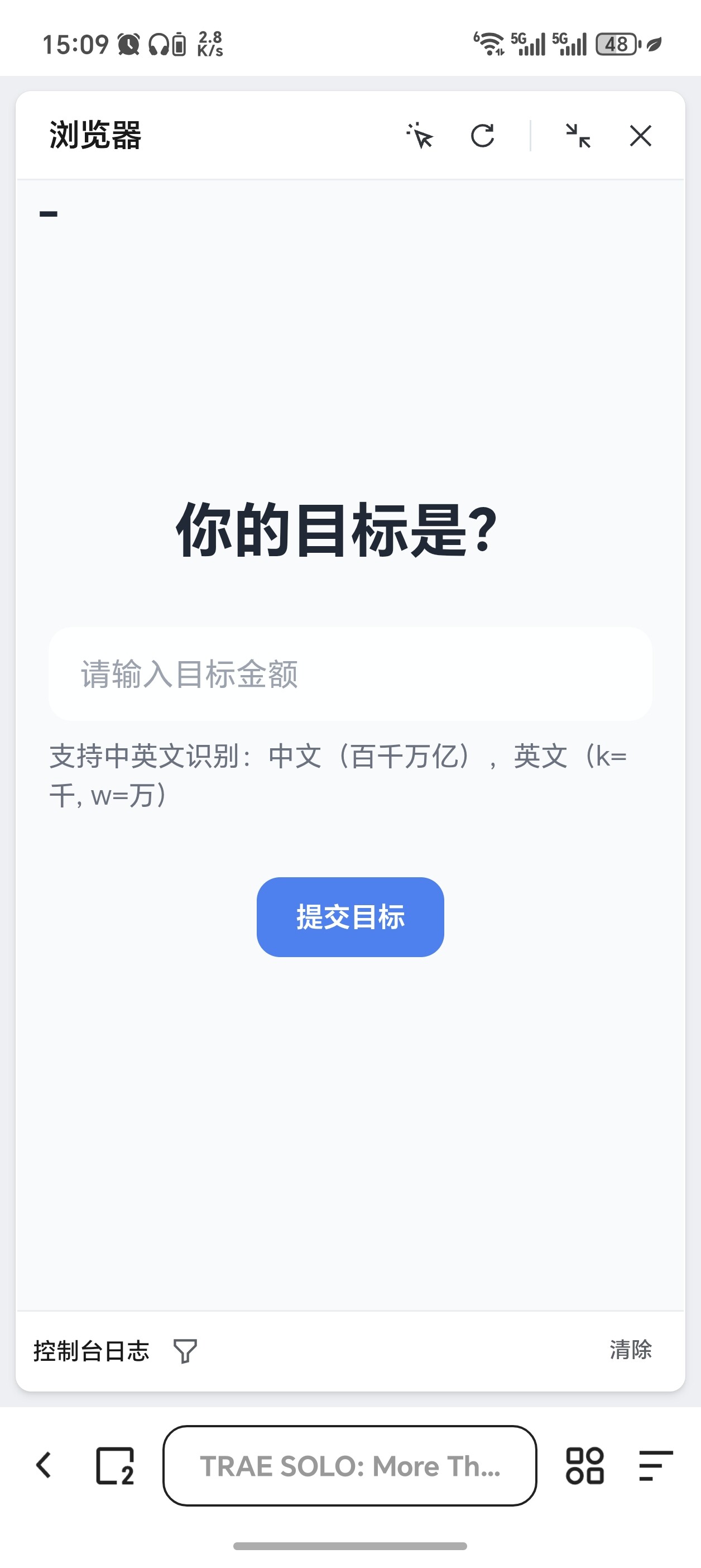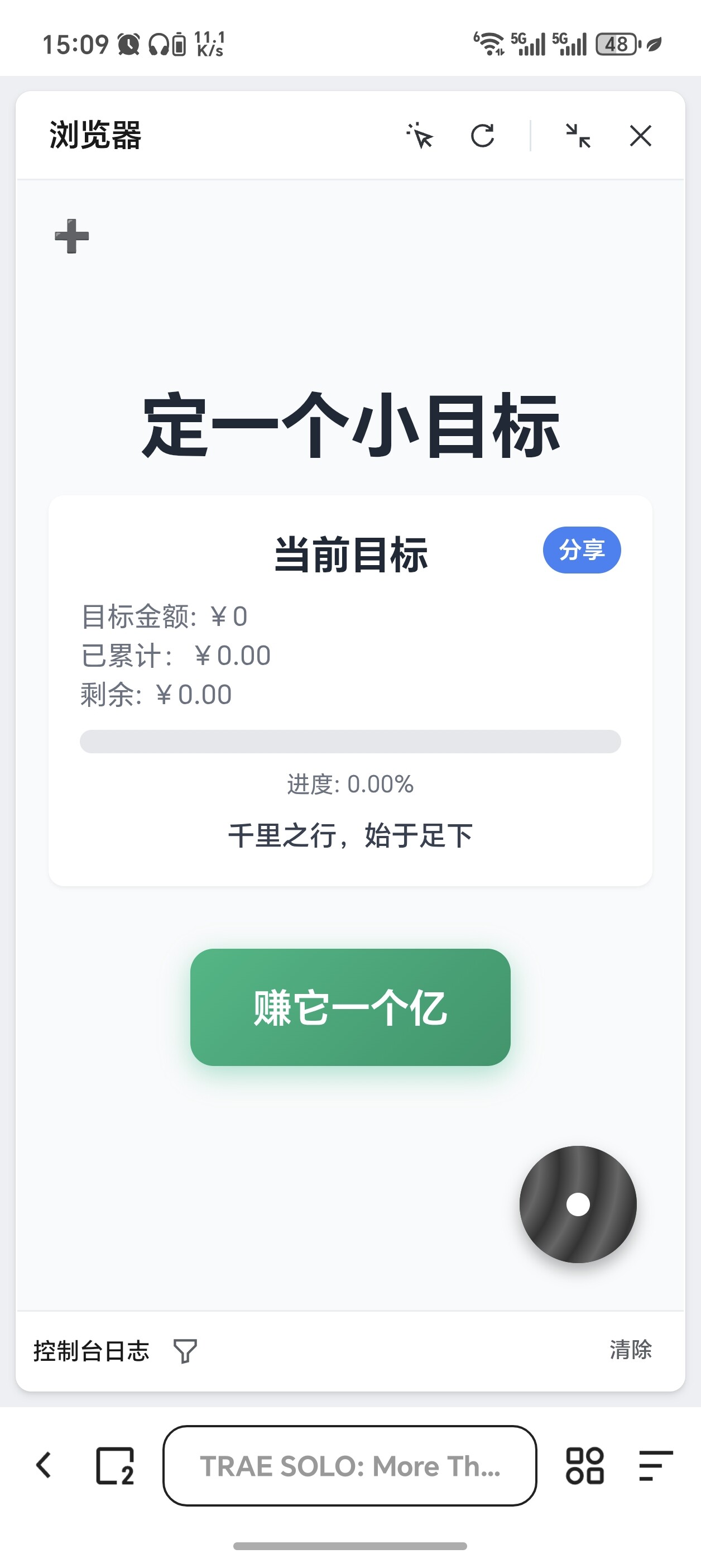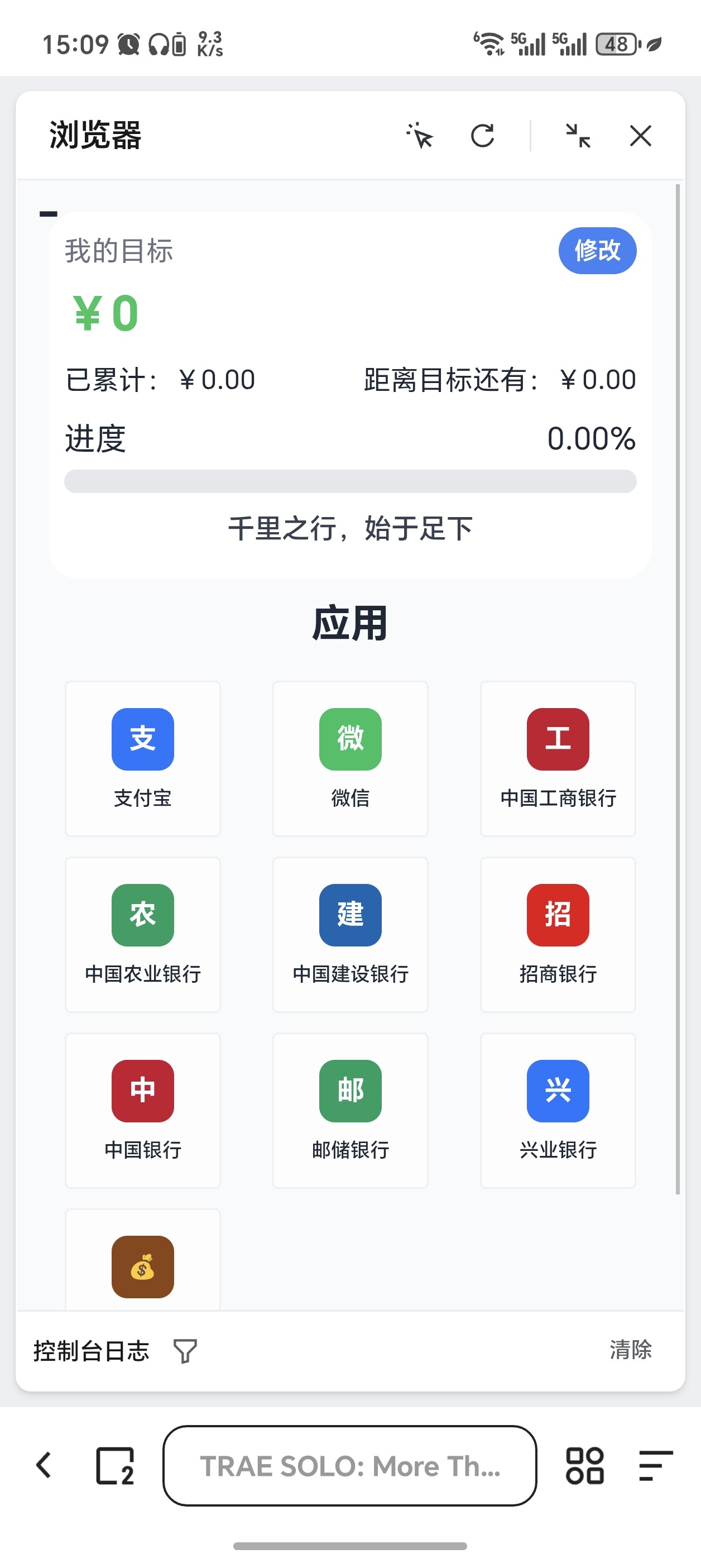 定个小目标激励自己,但使用各类记账APP时一直有困扰:一是广告多,影响使用体验;二是数据上传到云端,担心隐私泄露;三是功能冗余复杂,很多用不上的功能反而增加操作成本。我希望能拥有一个只属于自己、简单安全、纯本地运行的记账工具,于是选择用TRAE SOLO来完成这个项目。