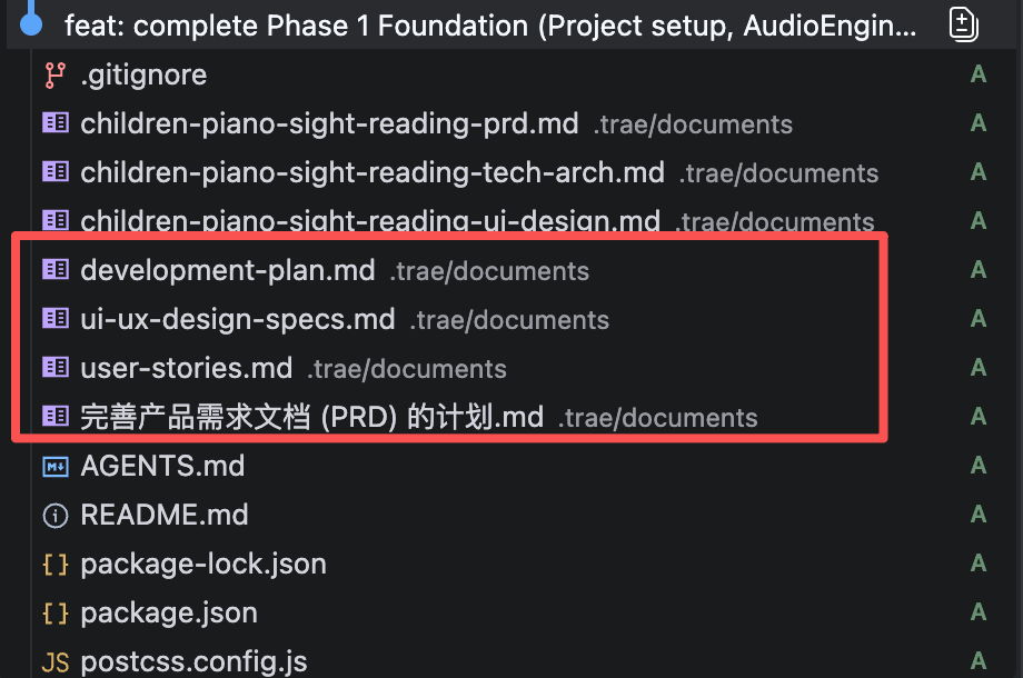 在项目初始化时,.trae/documents/ 目录下就已经包含了三个核心规划文档: