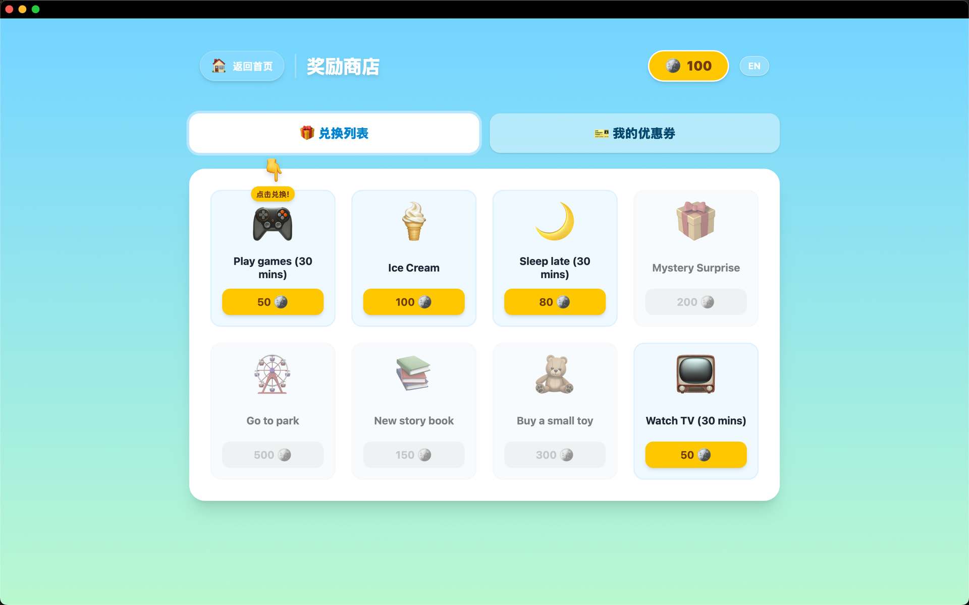 奖励商店(家长自定义奖励)