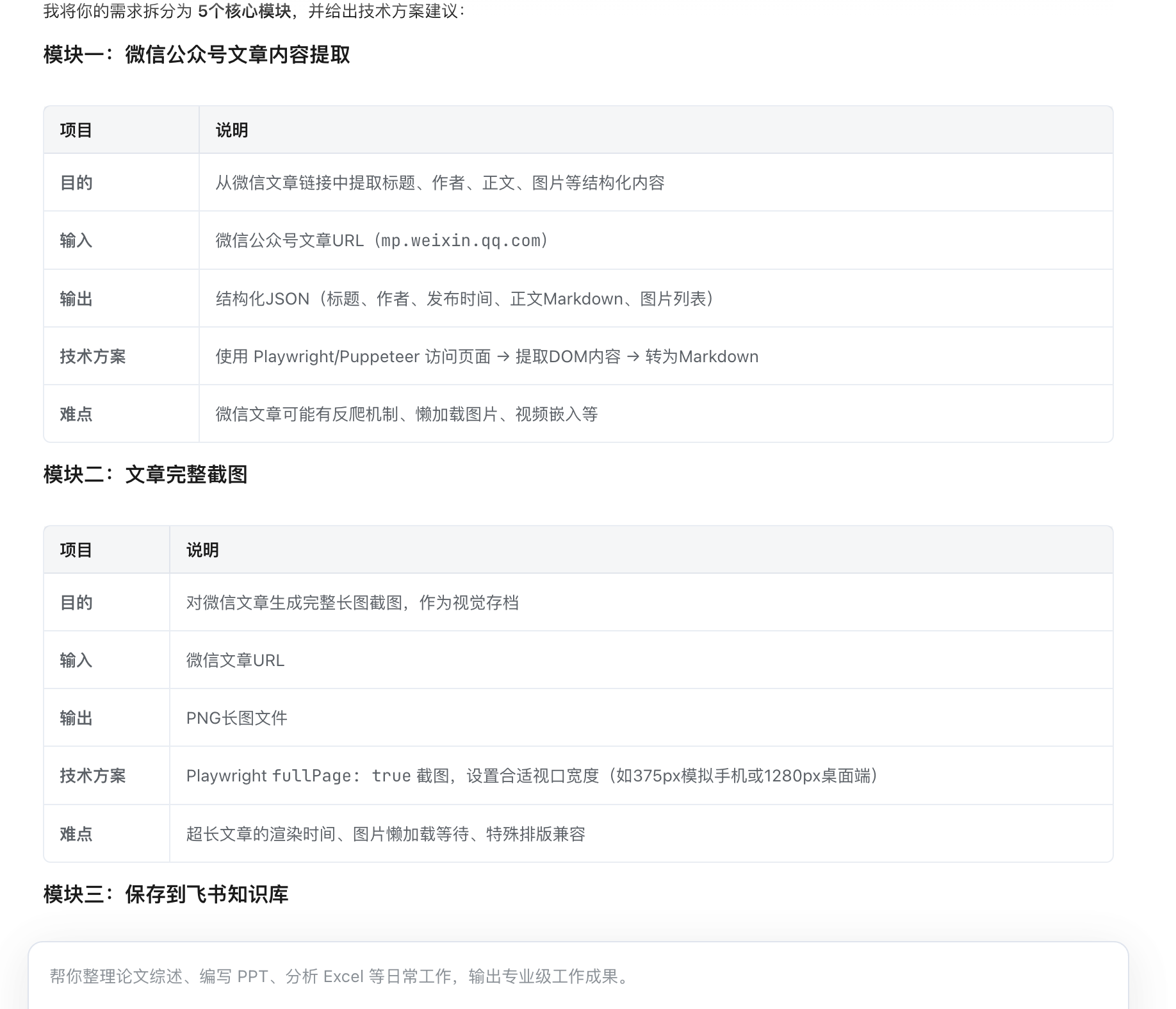 | 内容提取 | 从微信文章 URL 提取标题、正文、图片 | curl + cheerio |