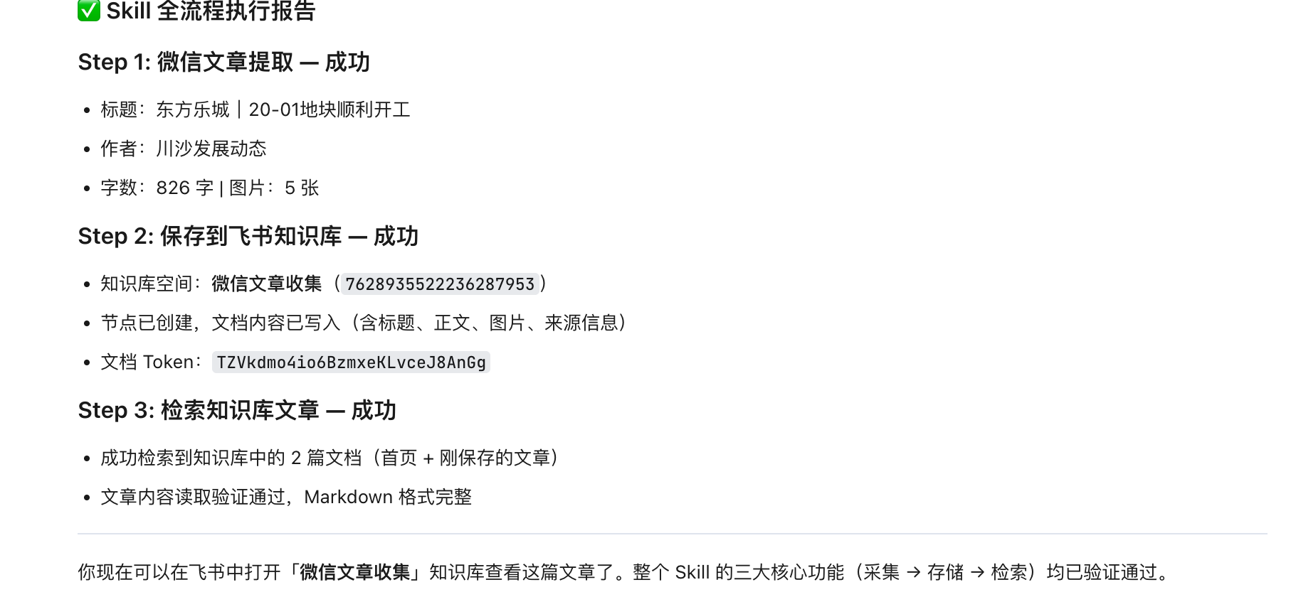 文章保存到飞书知识库后,图文按原文顺序完美排列,图片清晰显示,排版整洁。
