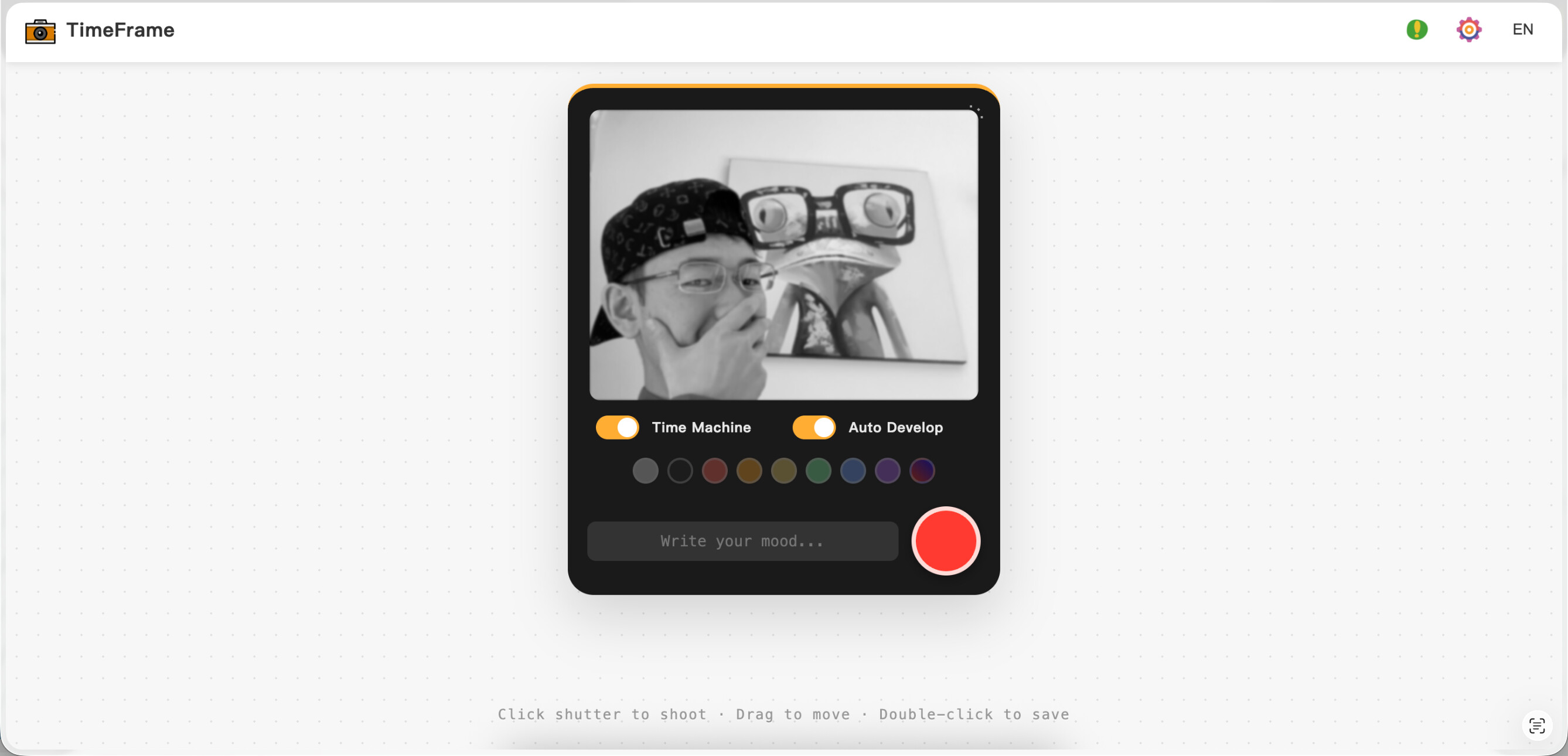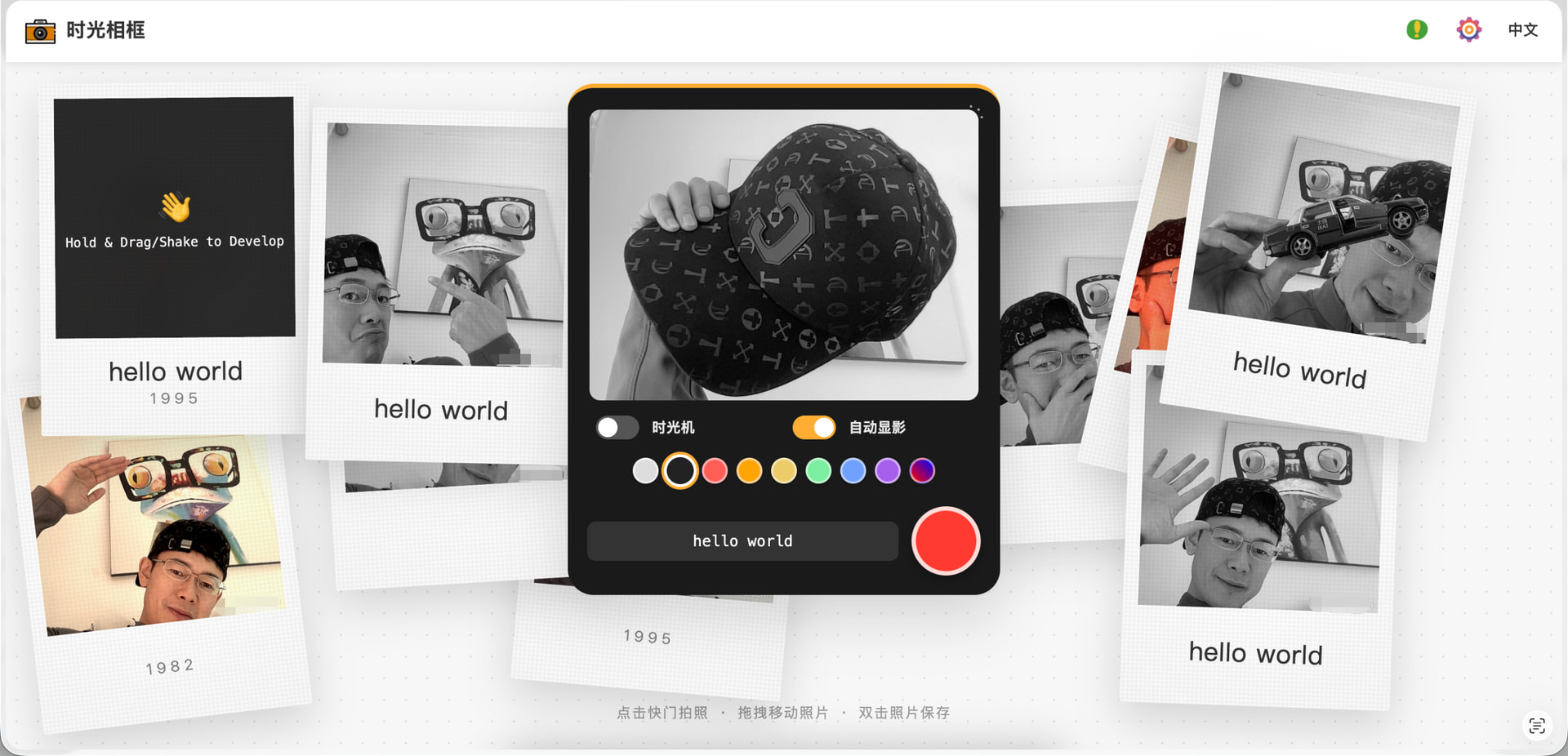 所以我做了这个「时光相框」,我的目标不是做一个功能齐全的拍照工具,而是想把那种咔嚓声、时光感、摇晃显影的仪式感找回来。按下快门后,摇一摇(或甩一甩)让照片慢慢清晰,重现拍立得的经典体验。