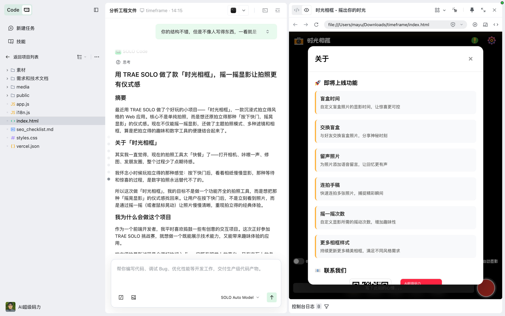 这次用 SOLO 完成「时光相框」后,我有几个深刻的感受: