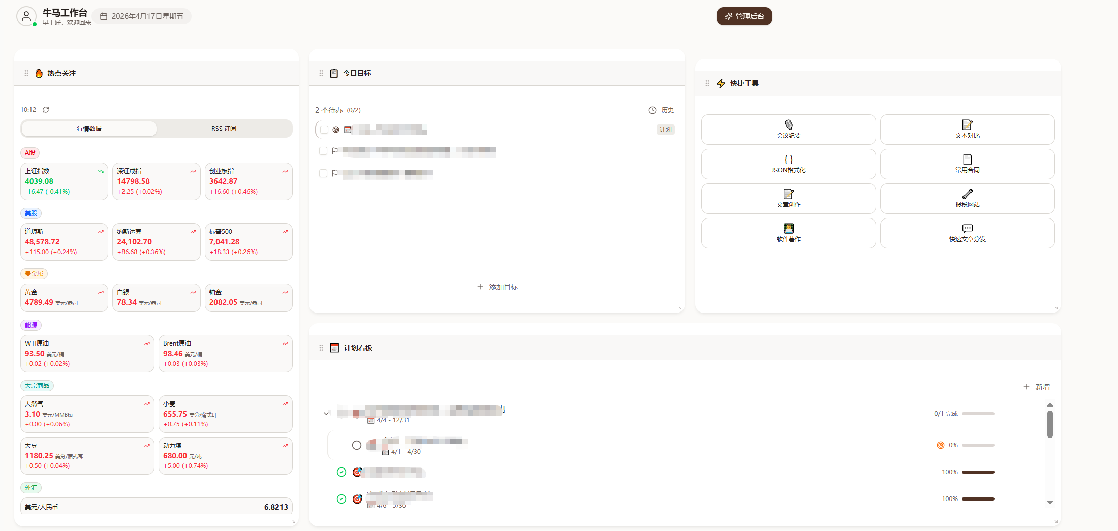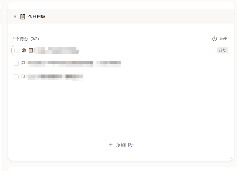 任务管理:短期目标用"今日目标"模块,长期规划用"计划看板"