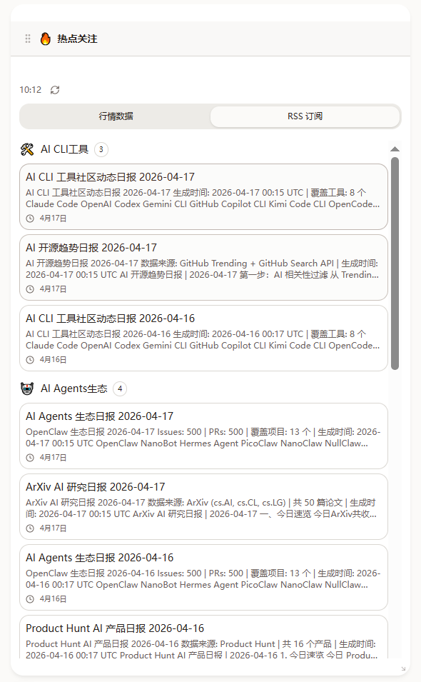 信息获取:通过 RSS 订阅获取 AI 领域最新动态和 GitHub 趋势