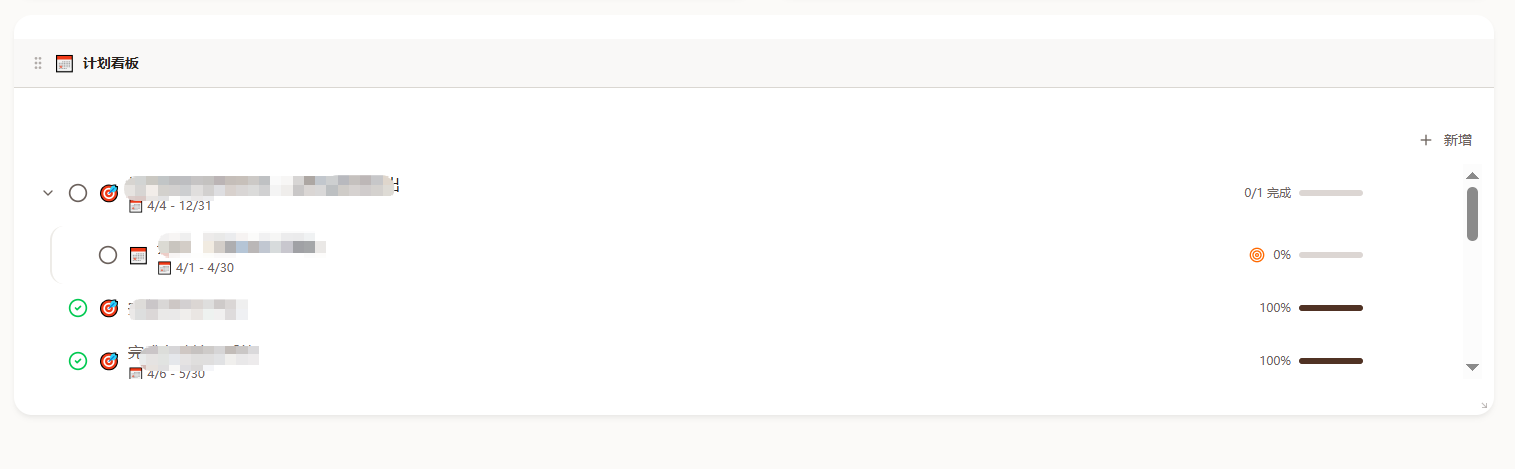 - 计划看板:长期目标,年度、季度、月度、周计划都有