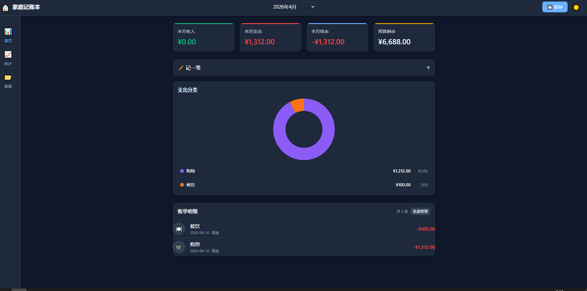 所以我决定自己做一个——简单、纯粹、数据完全本地化的家庭记账工具。