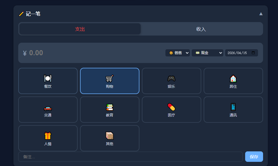 - 可折叠的快速记账表单