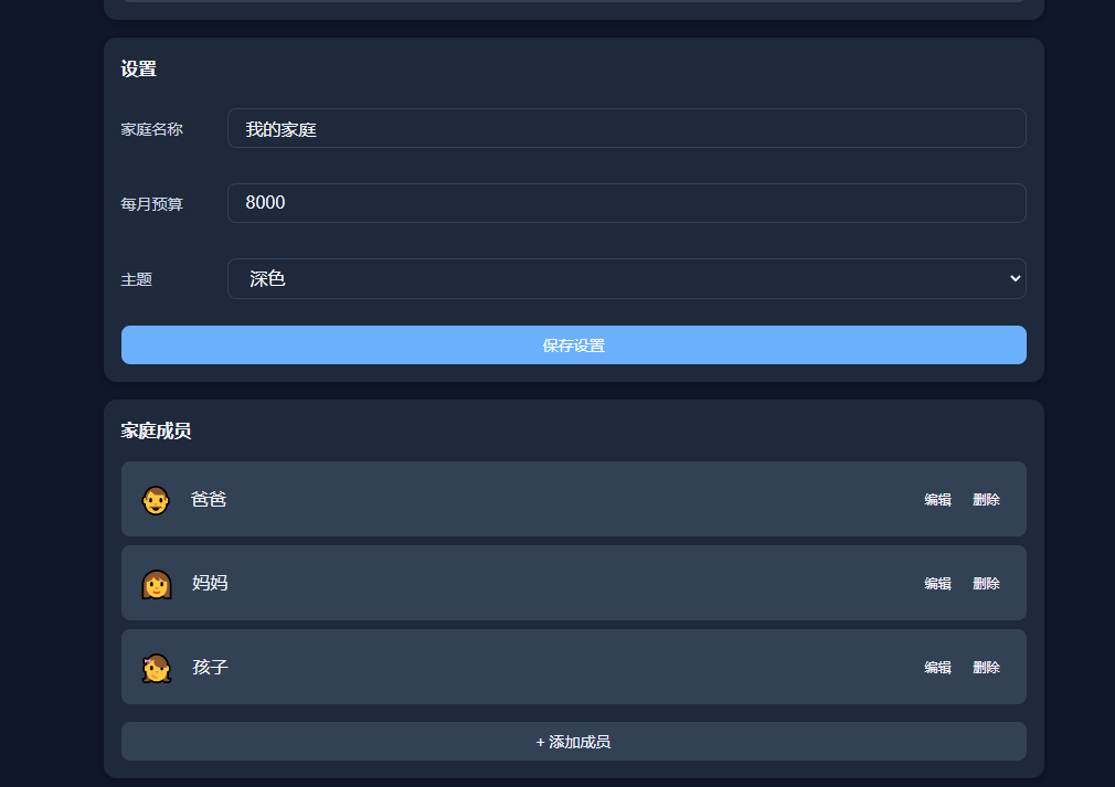 日常记账 App 要么需要注册账号,要么数据存在云端,隐私和掌控感都不够好。我用 TRAE SOLO 从零搭建了一个纯前端家庭记账程序——所有数据以 JSON 文件形式保存在本地目录,无需后端、无需注册、无需联网。支持多成员记账、分类统计、预算管理、CSV/Excel 导入导出,还能一键切换深色模式。