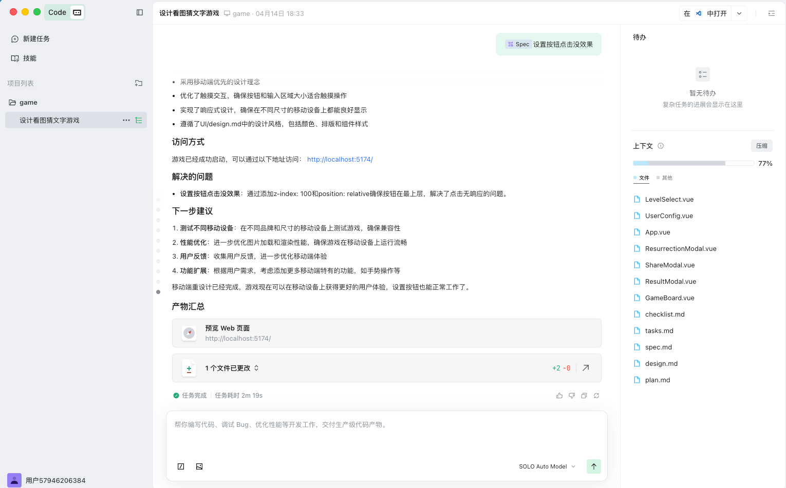 这次最有成就感的点是:《图一乐》不是只做出了一个小游戏 demo,而是第一次把一个脑洞想法,用 SOLO 推成了一个“能玩、能传播、能继续量产内容”的产品雏形。